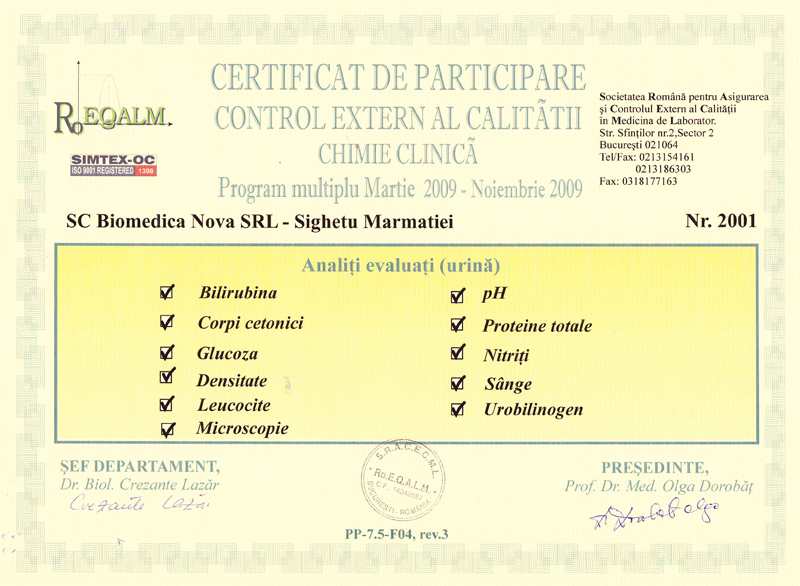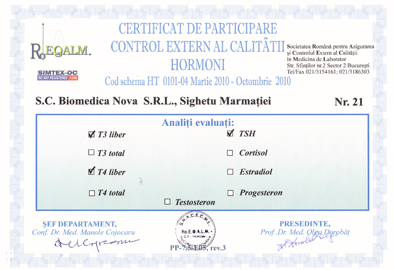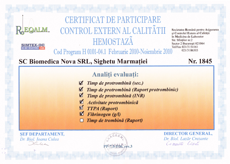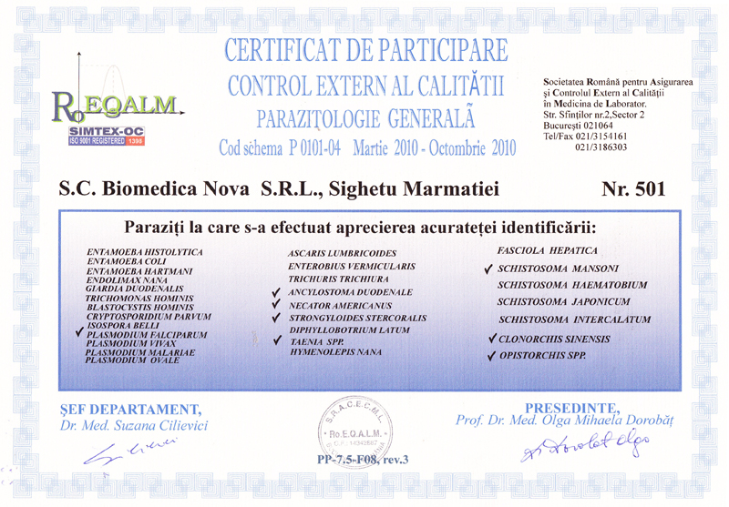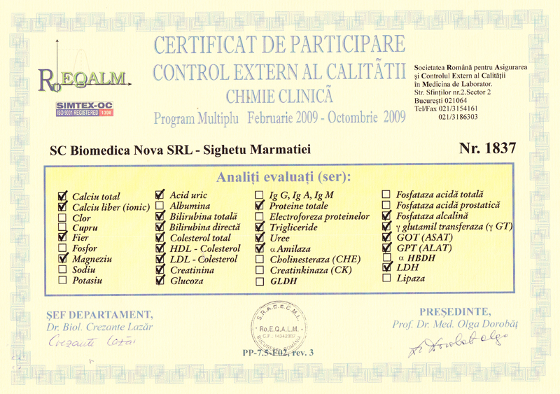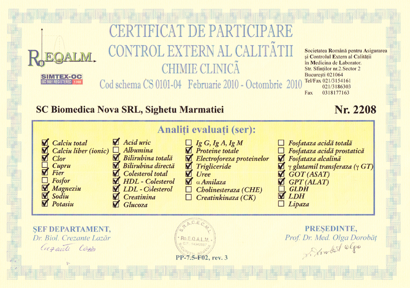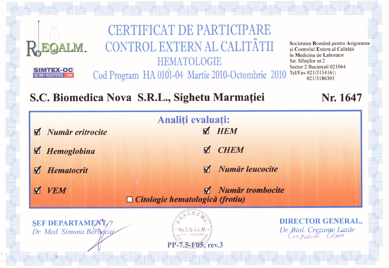 HEMATOLOGIE • IMUNOHEMATOLOGIE • BIOCHIMIE • IMUNOLOGIE-SEROLOGIE • MICROBIOLOGIE • PARAZITOLOGIE